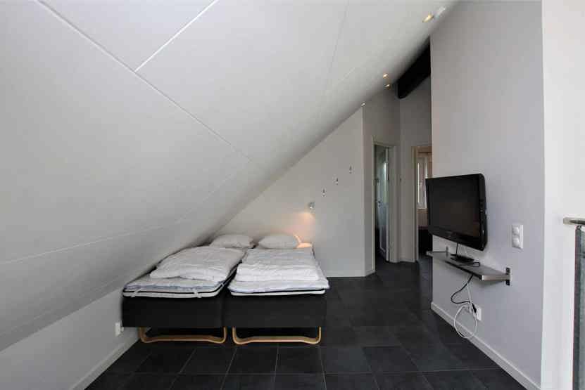 2 ekstra senge og TV i entréen i overetagen, vaskemaskine, tørreskab, skiopbevaring, balkon/altan (der skovles ikke sne), 2 parkeringspladser.
