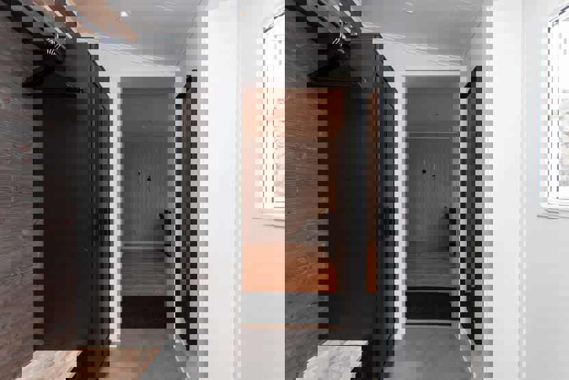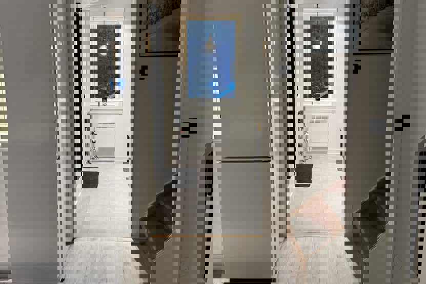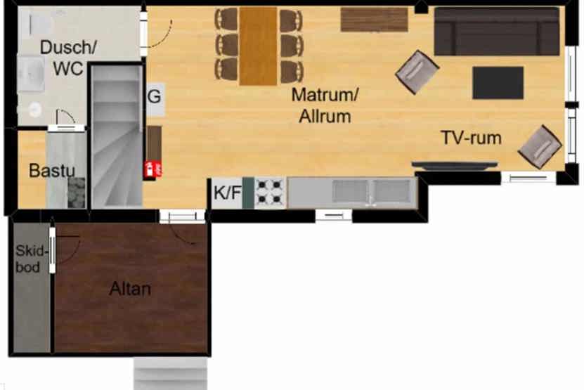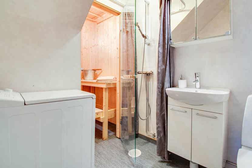 Badeværelse 1 = bruser, WC samt lille sauna. Badeværelse 2 = bruser/WC.