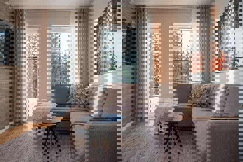 Stue med lille køkkenafdeling. TV, vaskemaskine, tørretumbler, balkon/altan (der skovles ikke sne), Havemøbler, skiopbevaring, 1 parkeringsplads.