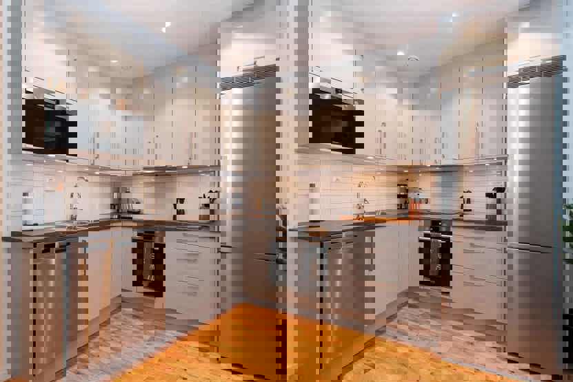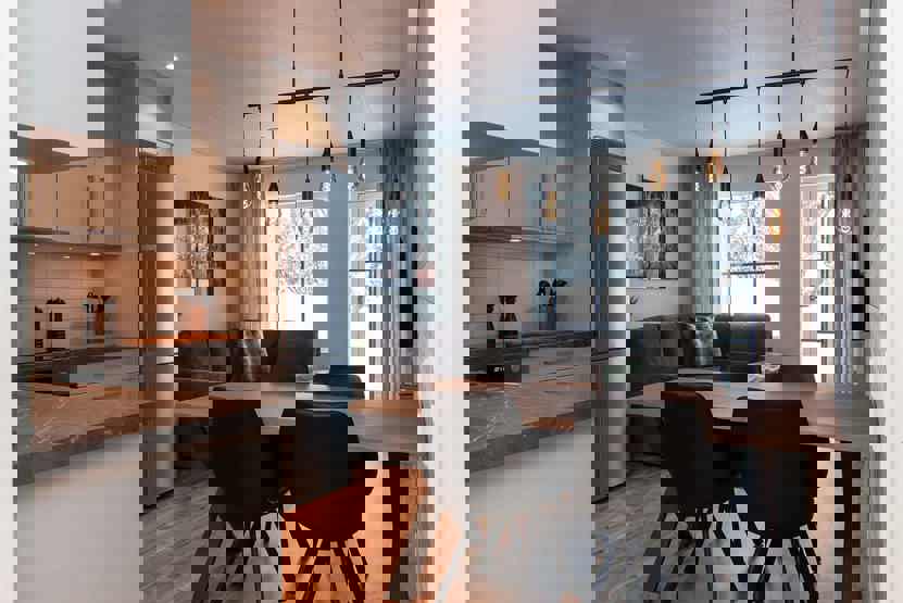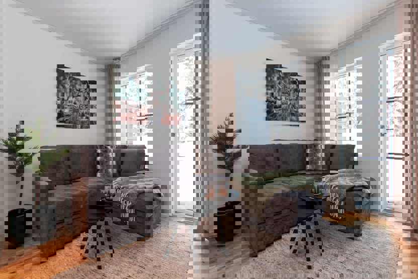 Stue med lille køkkenafdeling.
