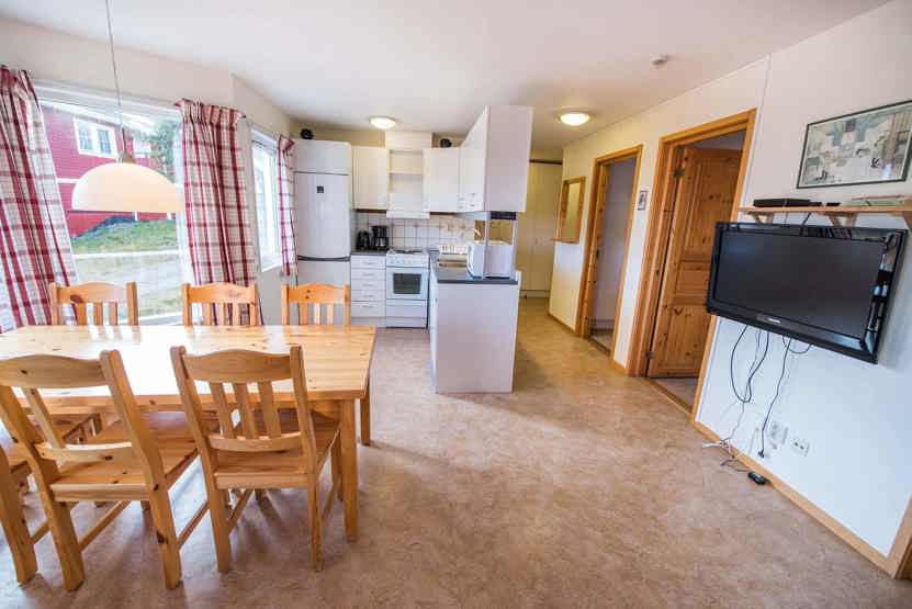Stue med TV, lille køkkenafdeling. tørreskab, balkon/altan (der skovles ikke sne), skiopbevaring, 1 parkeringsplads, adgang til elbilopladere med type 2 stik mod betaling.