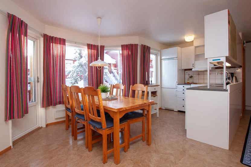 Stue med TV, lille køkkenafdeling. tørreskab, balkon/altan (der skovles ikke sne), skiopbevaring, 1 parkeringsplads, adgang til elbilopladere med type 2 stik mod betaling.