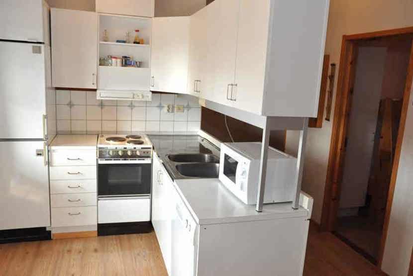 Køkkenet indeholder komfur med ovn, mikro, køleskab med en lille fryser (ca 40L), opvaskemaskine.