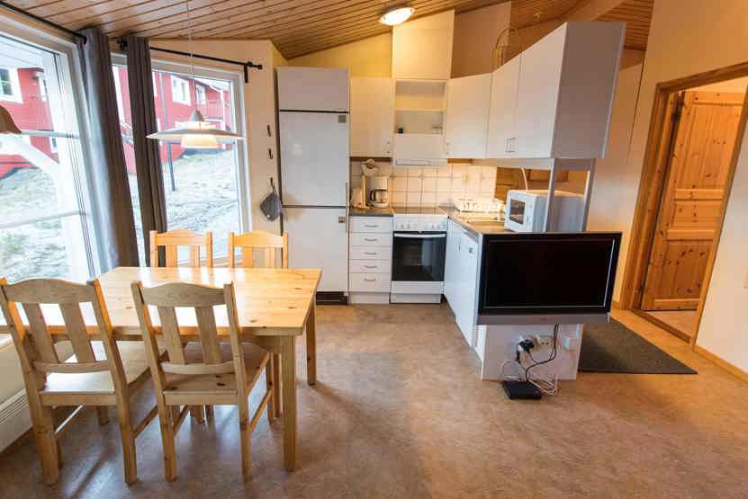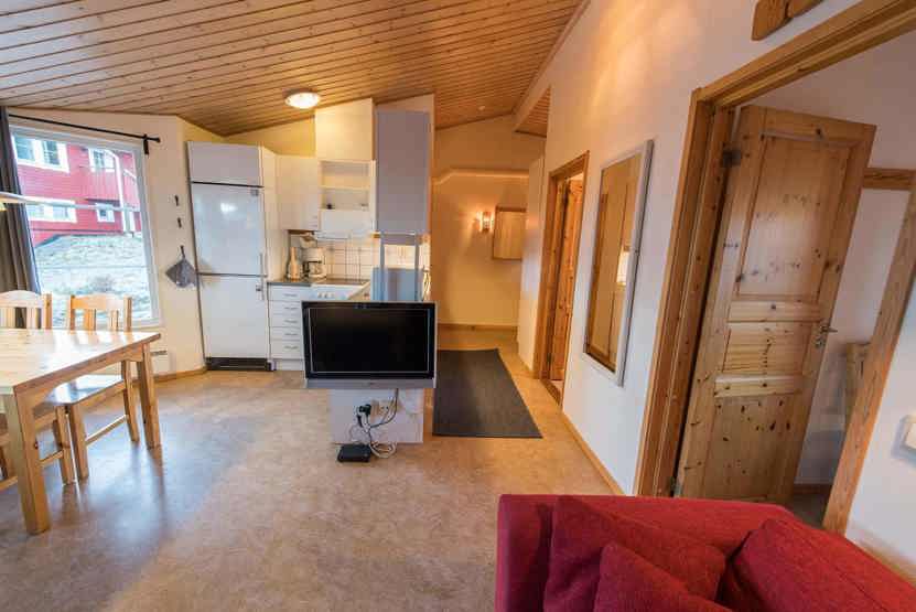 Stue med TV, lille køkkenafdeling. tørreskab, balkon/altan (der skovles ikke sne), skiopbevaring, 1 parkeringsplads, adgang til elbilopladere med type 2 stik mod betaling.