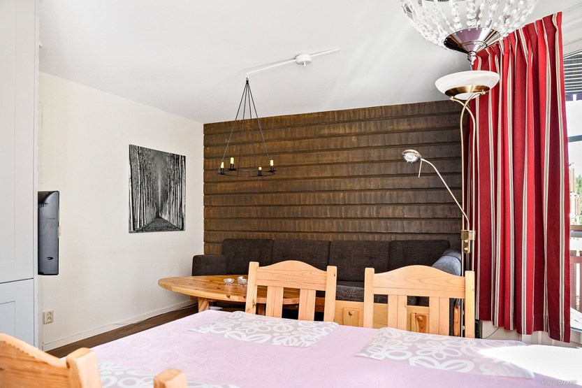 Stue med TV, lille køkkenafdeling. tørreskab, balkon/altan (der skovles ikke sne), skiopbevaring, 1 parkeringsplads, adgang til elbilopladere med type 2 stik mod betaling.