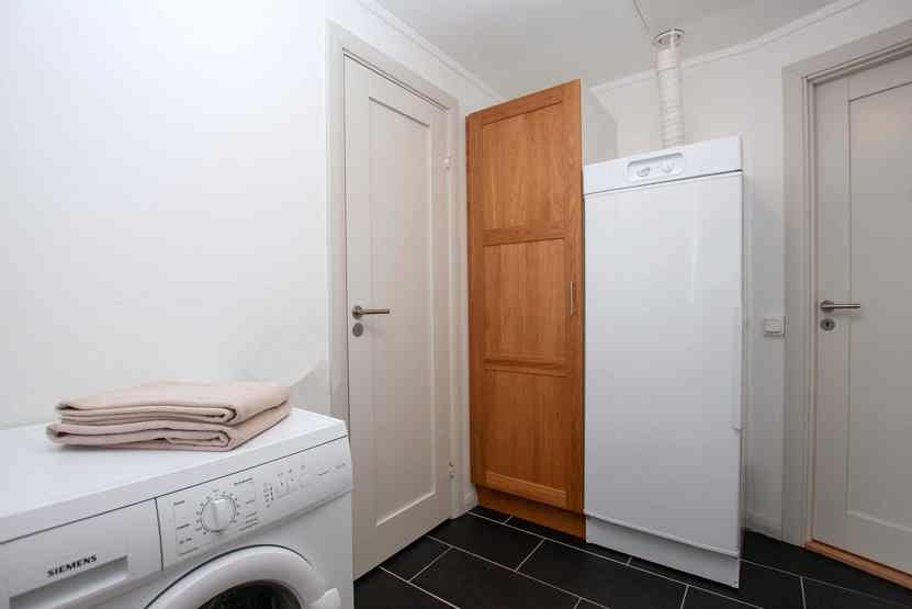 vaskemaskine, tørreskab, skiopbevaring, balkon/altan (der skovles ikke sne), med en fælles indgang, og en trappe, 2 parkeringspladser.