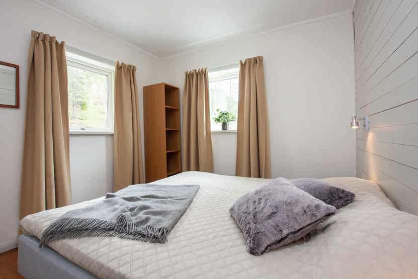 Soveværelse-1 = 1 dobbeltseng 180 cm bred. Soveværelse-2 = 1 dobbeltseng 160 cm bred. Soveværelse-3 = 2 enkeltsenge 80 cm bred. Soveværelse-4 = 1 køjeseng med 120 cm bred underkøje. Soveværelse-5 = 1 køjeseng.