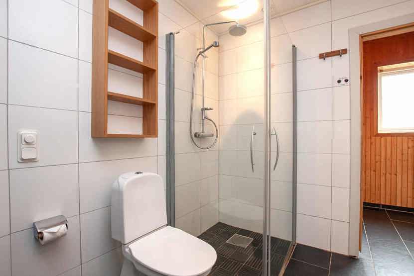 Badeværelse 1 = bruser/WC/sauna. Badeværelse 2 = bruser/WC.