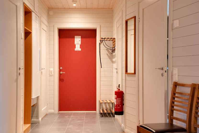 sengeskab i alrummet, tørreskab, skiopbevaring, balkon/altan (der skovles ikke sne), med en fælles indgang, og en trappe, 1 parkeringsplads, adgang til elbilopladere med type 2 stik mod betaling.