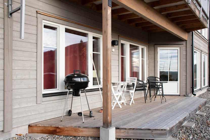 sengeskab i alrummet, tørreskab, skiopbevaring, balkon/altan (der skovles ikke sne), med en fælles indgang, og en trappe, 1 parkeringsplads, adgang til elbilopladere med type 2 stik mod betaling.