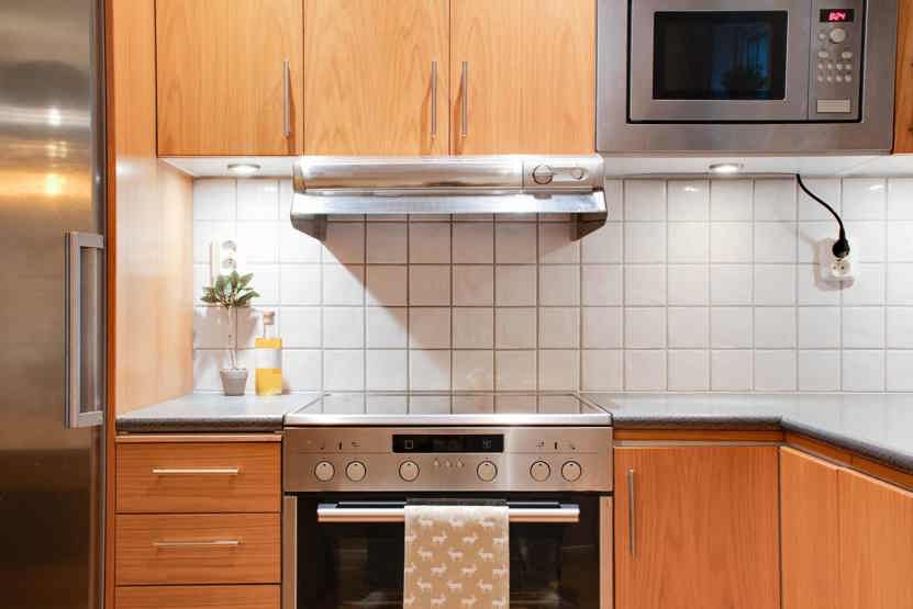 Køkkenet indeholder komfur med ovn, mikro, køleskab med fryser, opvaskemaskine.