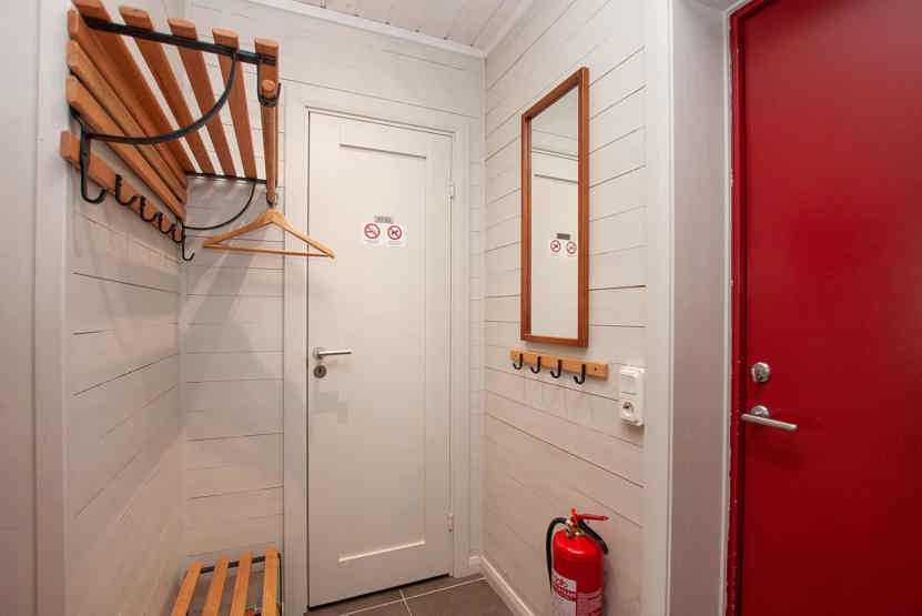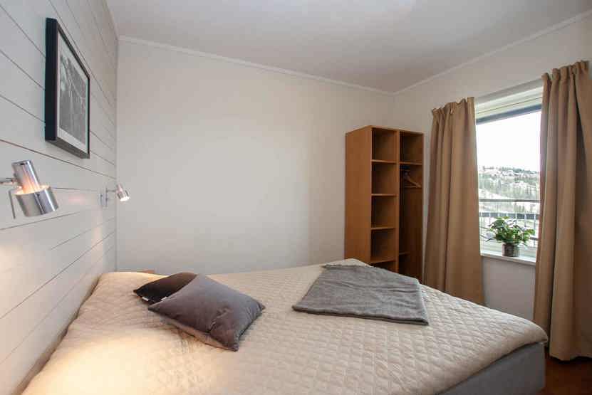 sengeskab i alrummet, tørreskab, skiopbevaring, balkon/altan (der skovles ikke sne), med en fælles indgang, og en trappe, 1 parkeringsplads.
