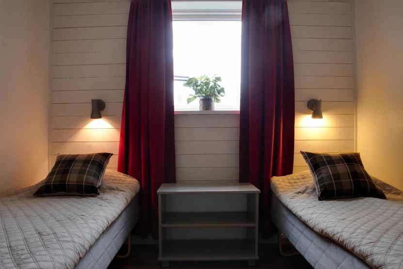 Soveværelse-1 = 1 dobbeltseng 180 cm bred. Soveværelse-2 = 2 enkeltsenge 80 cm bred.
