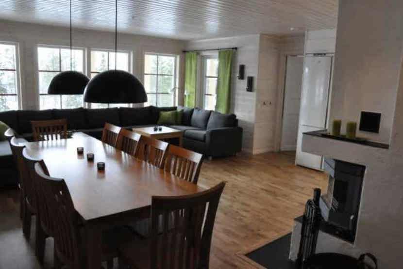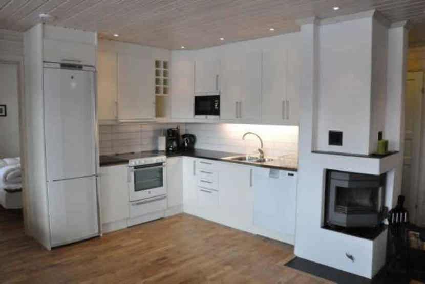 Stue med lille køkkenafdeling, TV, brændeovn (brænde indgår ikke).