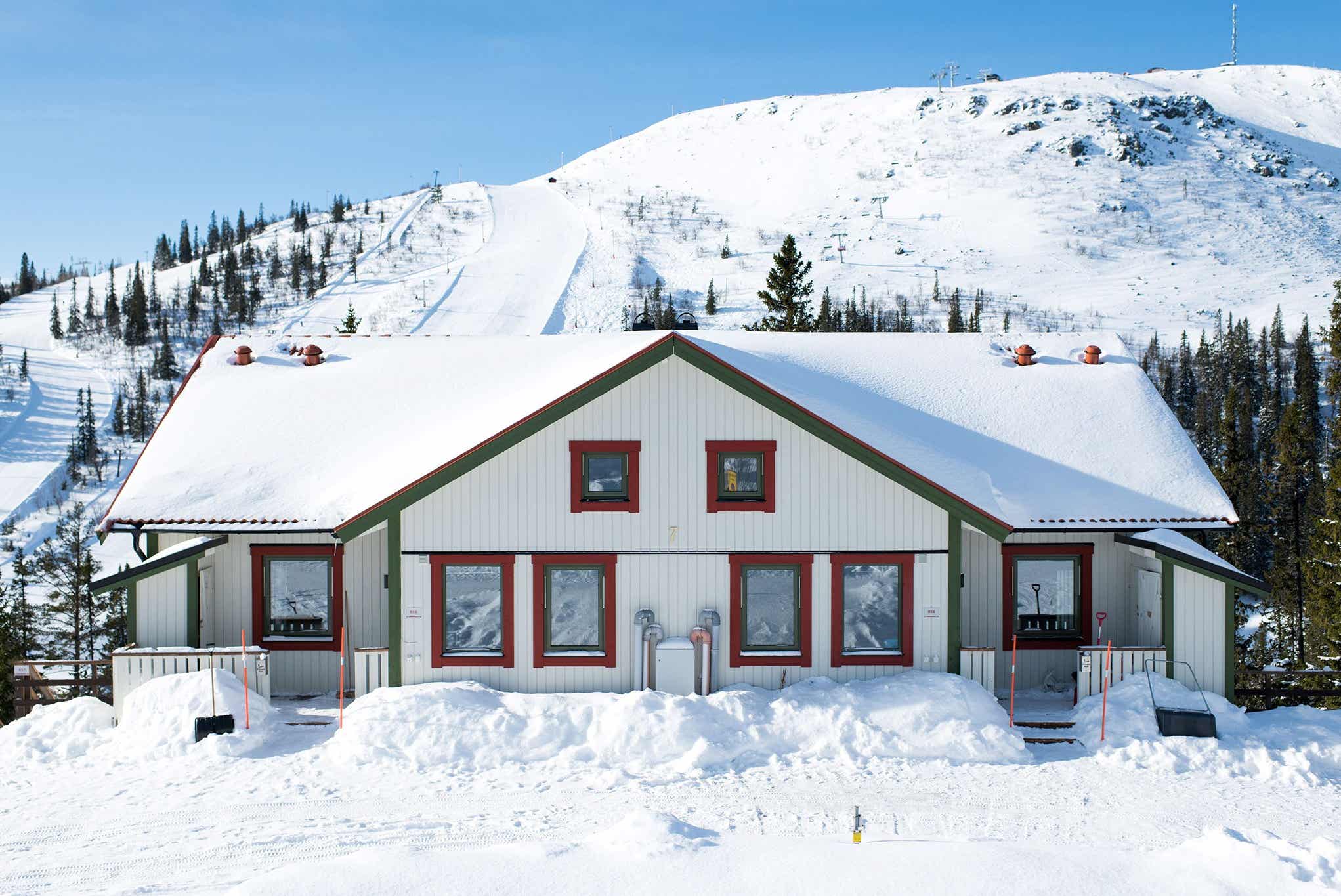 Et par minutters glideafstand til pisten. Et stort udvalg af hytter og lejligheder med egen madlavning og god standard i et roligt, højt beliggende område. En kort gåtur til al tænkelig service ved Skalets torv med mad, butikker og afterski.