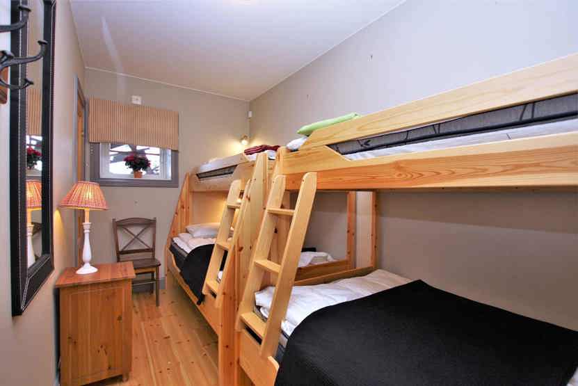 Soveværelse-1 = 1 dobbeltseng. Soveværelse-2 = 2 køjesenger med 105 cm bred underkøje og 80 cm bred overkøje. Soveværelse-3 = 1 dobbeltseng.