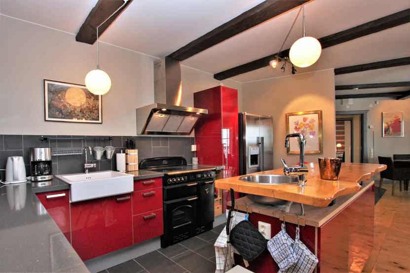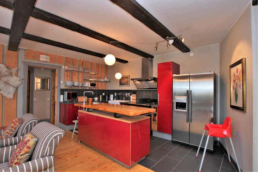 Køkkenet indeholder komfur med ovn, mikro, køleskab med fryser, opvaskemaskine.
