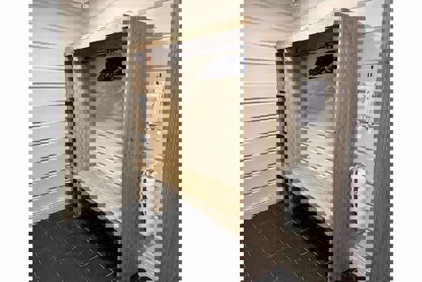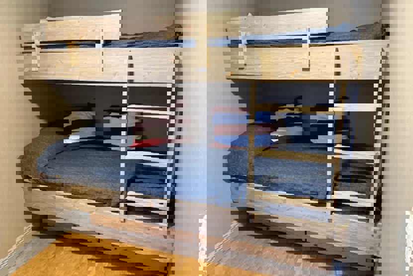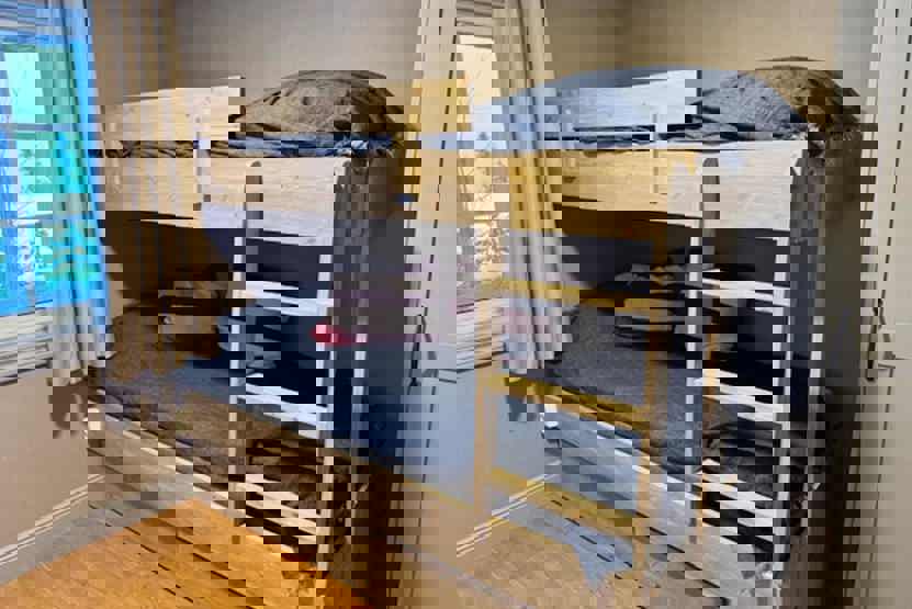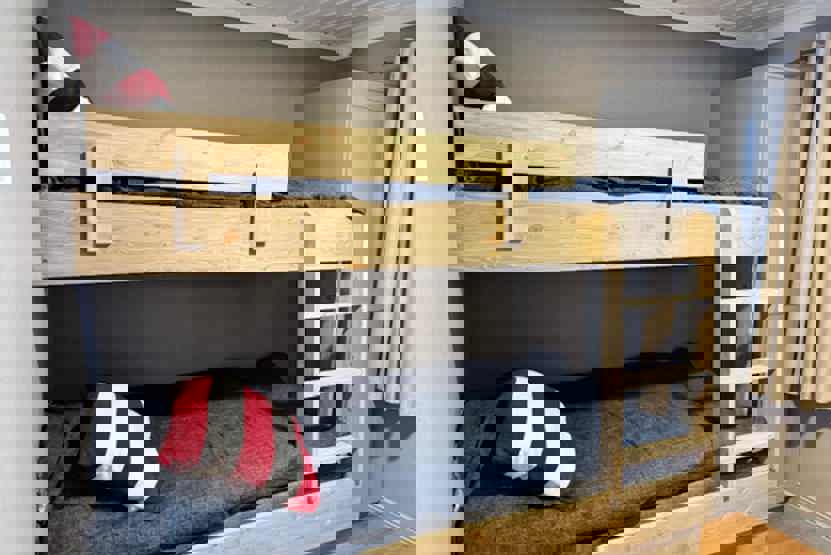 Soveværelse-1 = 1 dobbeltseng 160 cm bred. Soveværelse-2 = 1 køjeseng med 90 cm bred underkøje og 80 cm bred overkøje. Soveværelse-3 = 2 køjesenger med 90 cm bred underkøje og 80 cm bred overkøje.