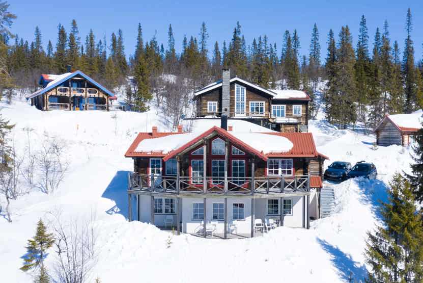 Skalsterrassen ligger i Vemdalsskalet. Lejlighed i underste etage af et hus med høj kælder, 8 sengepladser, 131 kvm, alrum med køkkenafdeling, 3 soveværelse, 2 brusere, 3 WC, sauna.