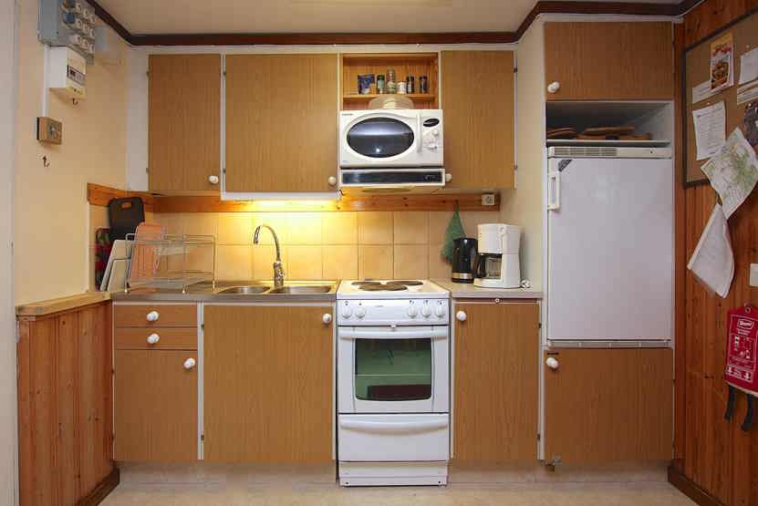Køkkenet indeholder mikro, køleskab med frostboks, komfur med ovn.