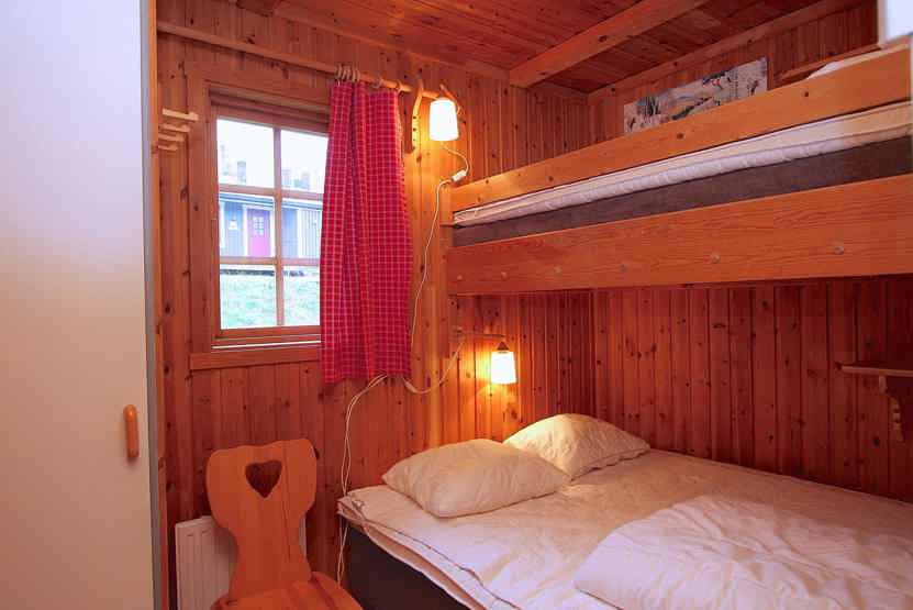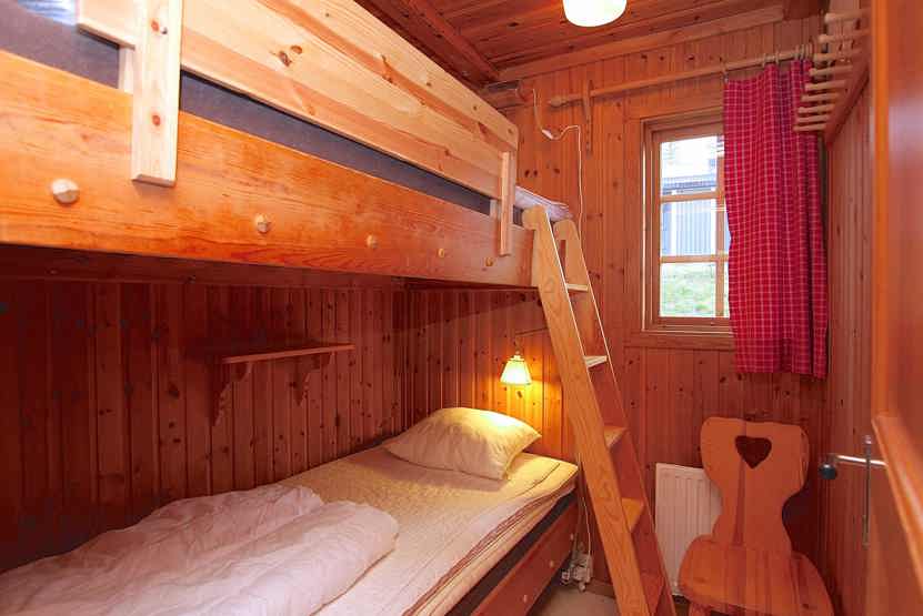 Soveværelse-1 = 1 køjeseng hvor både over og underkøje er 90 cm bred. Soveværelse-2 = 1 køyeseng med 140 cm bred underkøye og 90 cm bred overkøye.