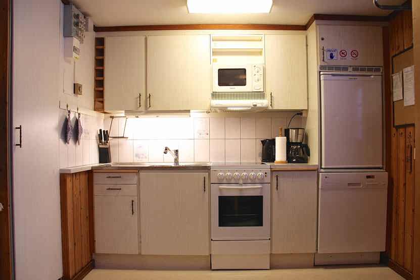 Køkkenet indeholder komfur med ovn, mikro, køleskab med frostboks, opvaskemaskine.