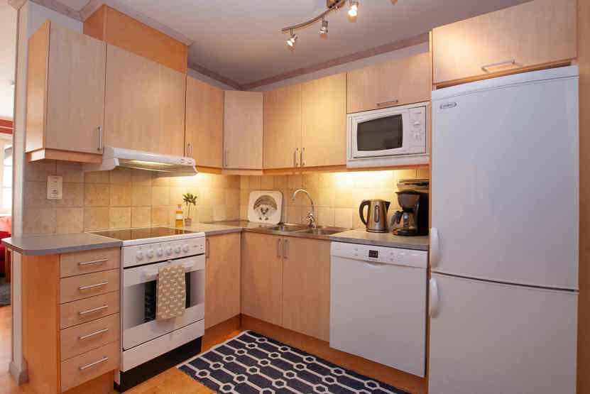 vaskemaskine, tørreskab, skiopbevaring, balkon/altan (der skovles ikke sne), 2 parkeringspladser, adgang til elbilopladere med type 2 stik mod betaling.