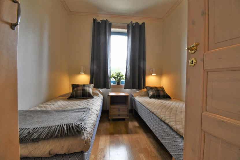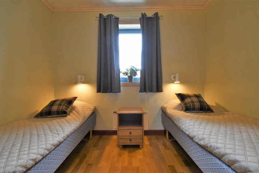 Soveværelse-1 = 1 dobbeltseng. Soveværelse-2 = 2 enkeltsenge. Soveværelse-3 = 2 enkeltsenge. Soveværelse-4 = 1 køjeseng med 120 cm bred underkøje. Soveværelse-5 = 1 dobbeltseng. Soveværelse-6 = 2 enkeltsenge. Soveværelse-7 = 2 enkeltsenge.