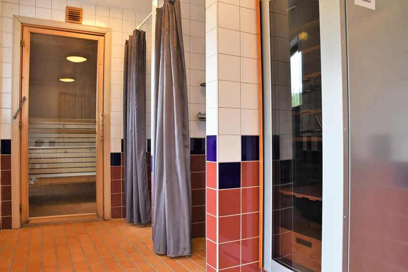 Badeværelse 1 = bruser/WC. Badeværelse 2 = wc. Badeværelse 3 = relaxafdeling med sauna, 2 st brusere og WC. Badeværelse 4 = bruser/WC.