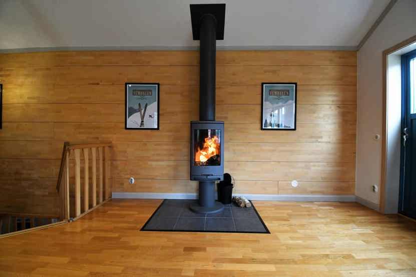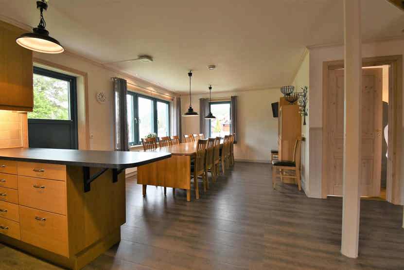 Stue med separat køkken, TV, brændeovn (brænde indgår ikke).
