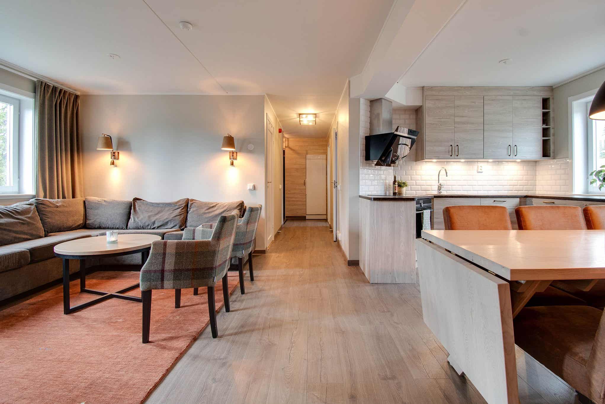 Sörgårdarna ligger tæt på børneområdet med glide- eller gåafstand til pisten. De lyse og pæne lejligheder er af god standard, og har udstyr til egen madlavning. En vis gåafstand til Skalets torv med mad, butikker og afterski.