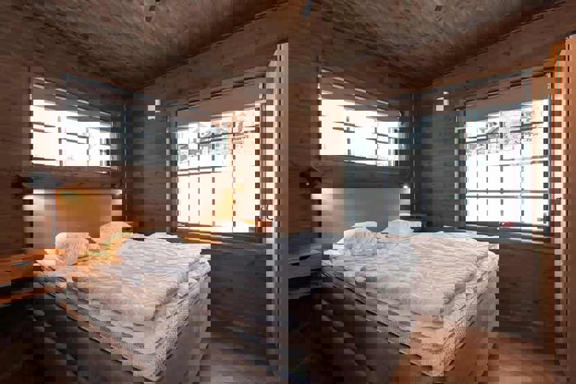 Soveværelse-1 = 1 dobbeltseng 160 cm bred. Soveværelse-2 = 1 dobbeltseng 160 cm bred. Soveværelse-3 = 4 enkeltsenge.