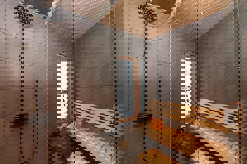 Badeværelse 1 = bruser/WC/sauna. Badeværelse 2 = wc.