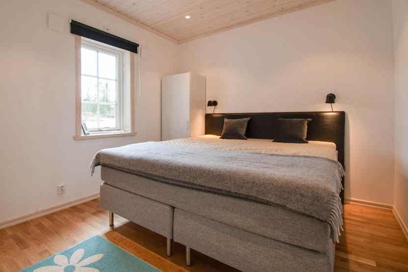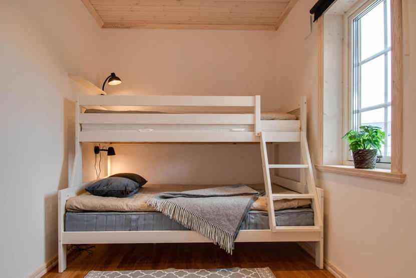 Soveværelse-1 = 1 dobbeltseng 180 cm bred. Soveværelse-2 = 1 køyeseng med 120 cm bred underkøye og 90 cm bred overkøye. Soveværelse-3 = 1 køyeseng med 120 cm bred underkøye og 90 cm bred overkøye.
