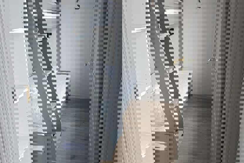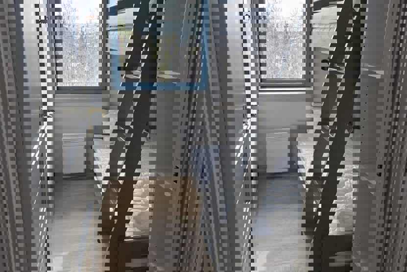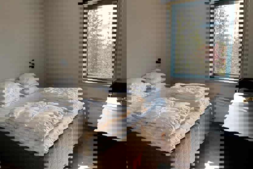Soveværelse-1 = 1 dobbeltseng. Soveværelse-2 = 1 køyeseng med 120 cm bred underkøye og 80 cm bred overkøye. Soveværelse-3 = 1 køyeseng med 120 cm bred underkøye og 80 cm bred overkøye. Soveværelse-4 = 1 køyeseng med 120 cm bred underkøye og 80 cm bred overkøye.