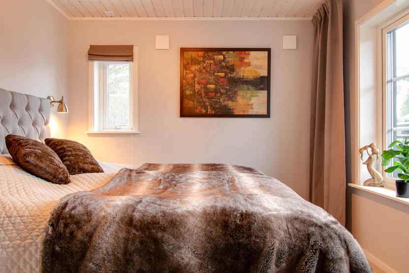 Soveværelse-1 = 1 dobbeltseng 180 cm bred. Soveværelse-2 = 1 køjeseng hvor både over og underkøje er 90 cm bred. Soveværelse-3 = 1 køjeseng hvor både over og underkøje er 90 cm bred.