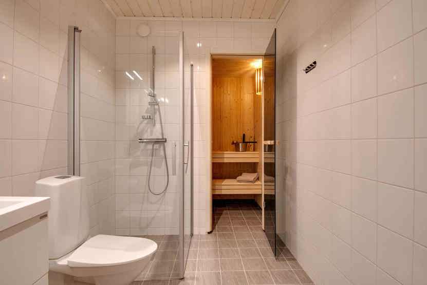 Badeværelse 1 = bruser/WC/sauna. Badeværelse 2 = wc.
