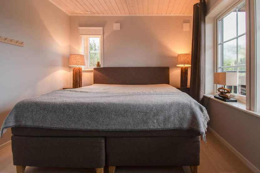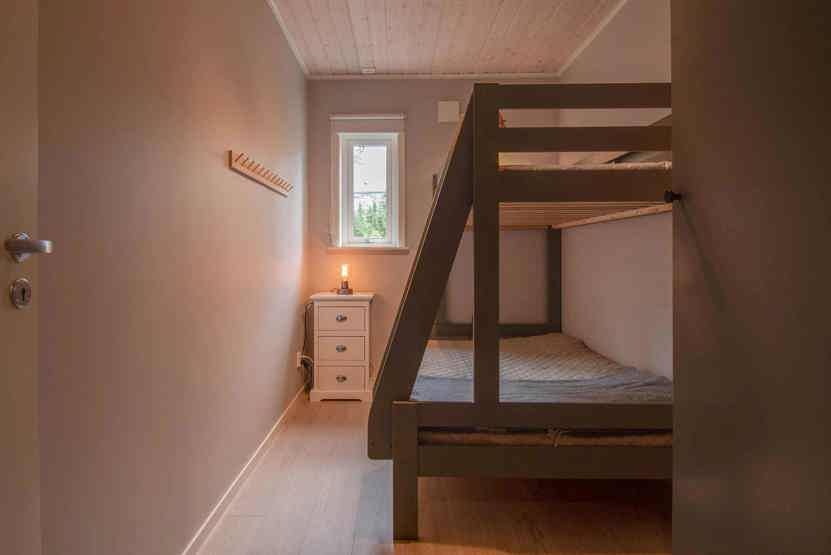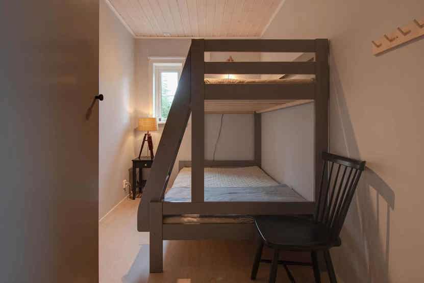 Soveværelse-1 = 1 dobbeltseng 180 cm bred. Soveværelse-2 = 1 køyeseng med 120 cm bred underkøye og 90 cm bred overkøye. Soveværelse-3 = 1 køyeseng med 120 cm bred underkøye og 90 cm bred overkøye.