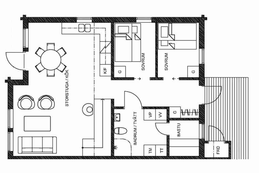 Badeværelse 1 = bruser/WC/sauna. Badeværelse 2 = bruser/WC.