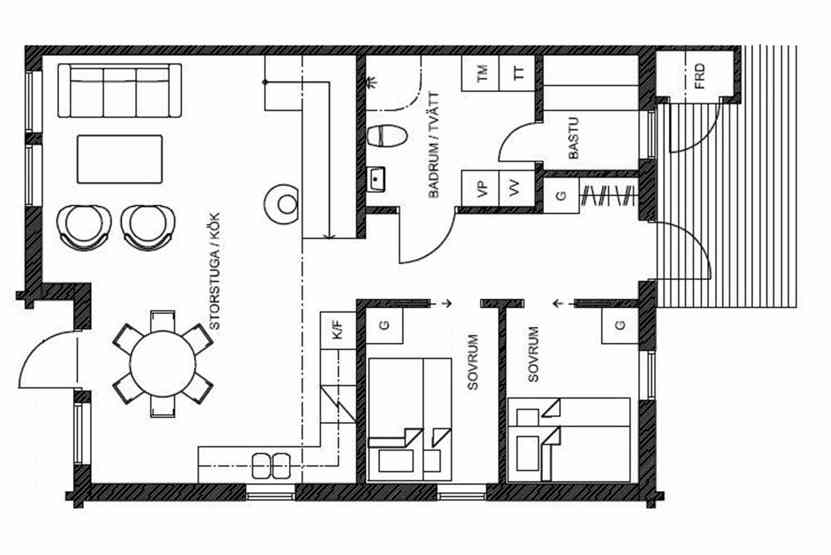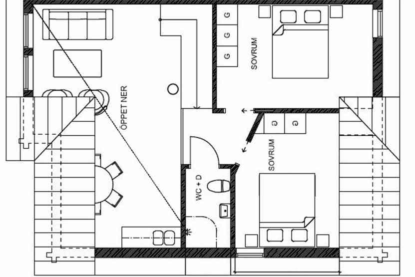 Badeværelse 1 = bruser/WC/sauna. Badeværelse 2 = bruser/WC.