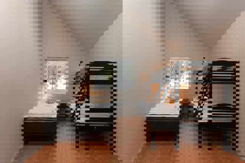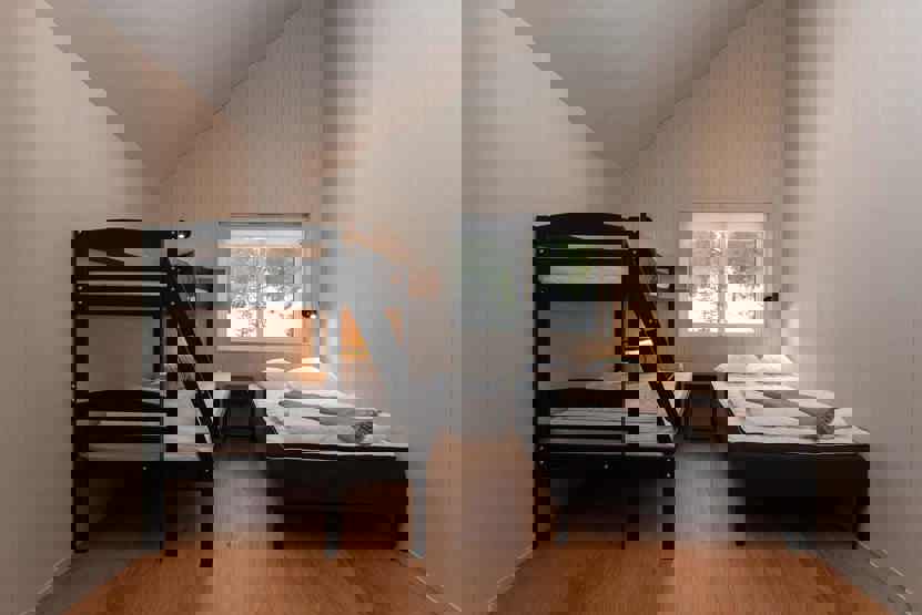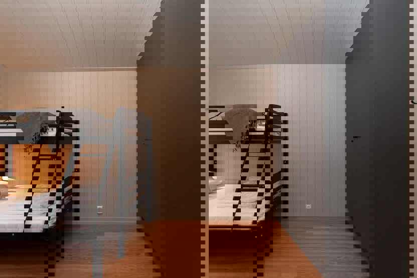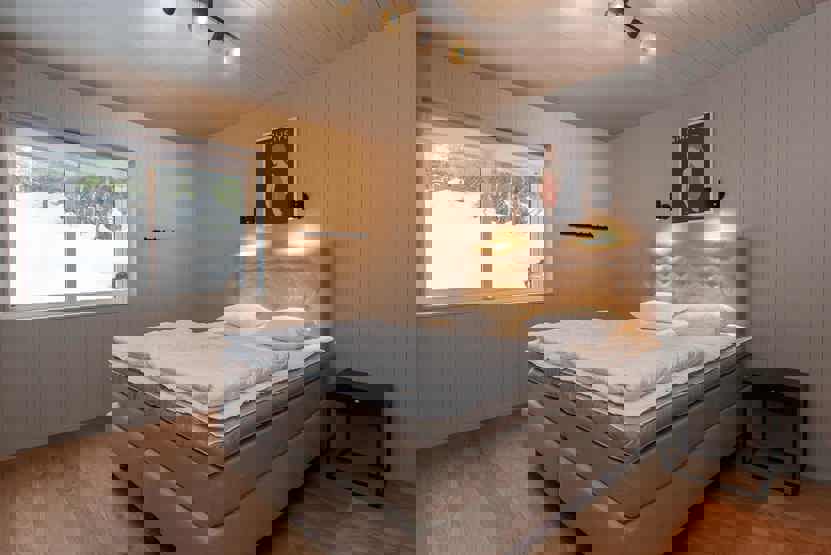 Soveværelse-1 = 1 dobbeltseng 160 cm bred. Soveværelse-2 = 1 dobbeltseng 160 cm bred. Soveværelse-3 = 1 enkeltseng 120 cm bred, 1 køyeseng med 120 cm bred underkøye og 80 cm bred overkøye. Soveværelse-4 = 1 enkeltseng 120 cm bred, 1 køyeseng med 120 cm bred underkøye og 80 cm bred overkøye.