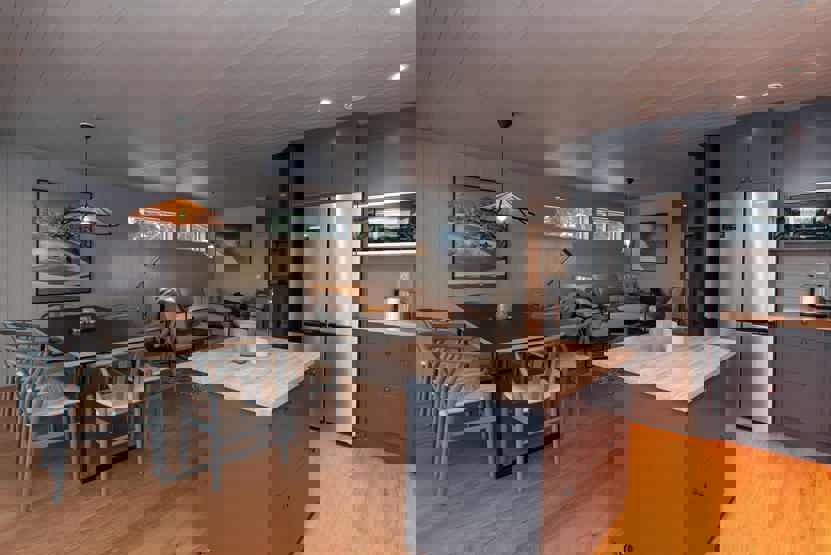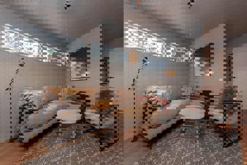 Solsidan ligger i Storhogna. Hytte i 2 etage, 10 sengepladser, 130 kvm, alrum med køkkenafdeling, 4 soveværelse, 2 brusere, 2 WC, sauna, byggeår 2023.
