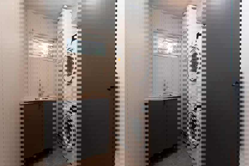 Badeværelse 1 = bruser/WC/sauna. Badeværelse 2 = bruser/WC.