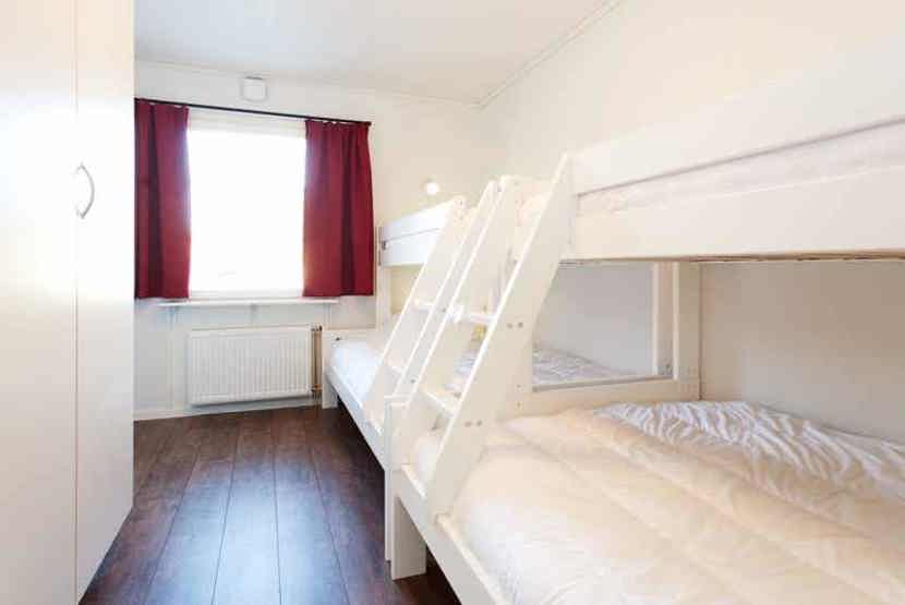 Soveværelse-1 = 1 dobbeltseng. Soveværelse-2 = 1 dobbeltseng. Soveværelse-3 = 1 dobbeltseng. Soveværelse-4 = 2 køjesenge med 120 cm bred underkøje. Soveværelse-5 = 2 enkeltsenge. Soveværelse-6 = 2 enkeltsenge.
