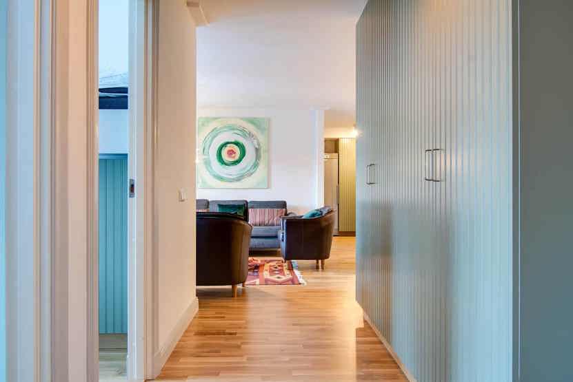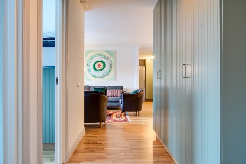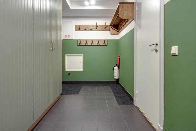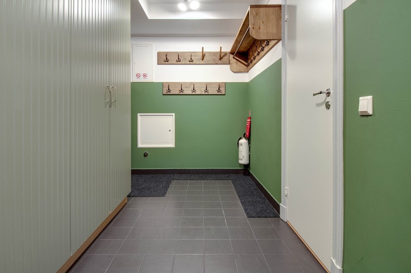 vaskemaskine, tørreskab, Havemøbler, balkon (der skovles ikke sne), skiopbevaring, med en fælles indgang, elevator findes i huset.