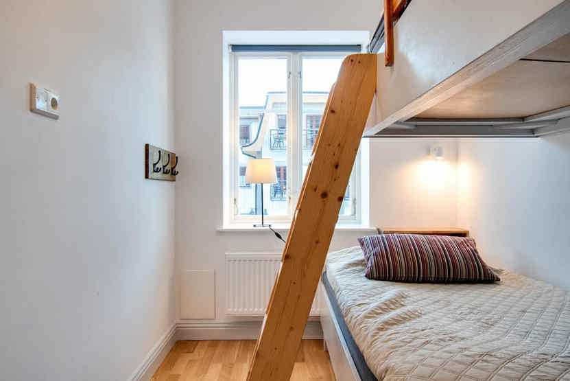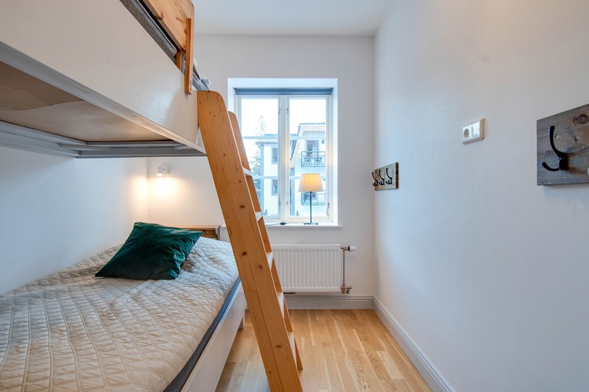 Soveværelse-1 = 1 dobbeltseng 180 cm bred. Soveværelse-2 = 1 køjeseng med 90 cm bred underkøje og 80 cm bred overkøje. Soveværelse-3 = 1 køjeseng med 90 cm bred underkøje og 80 cm bred overkøje.