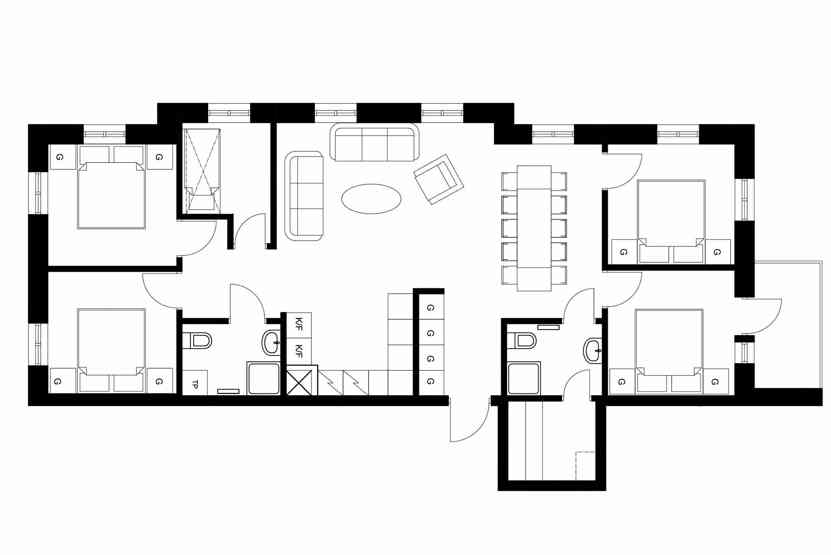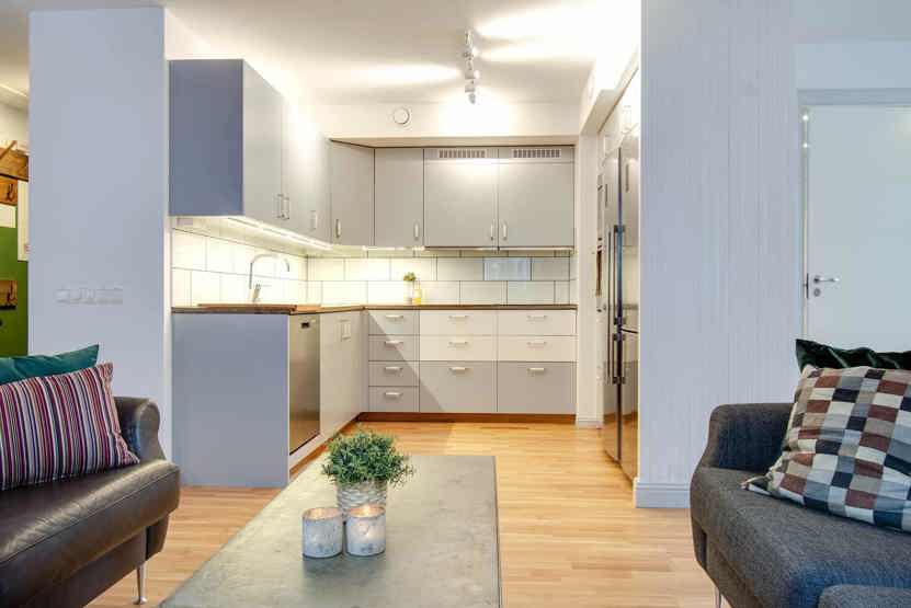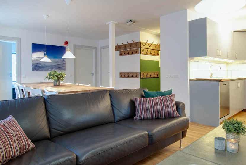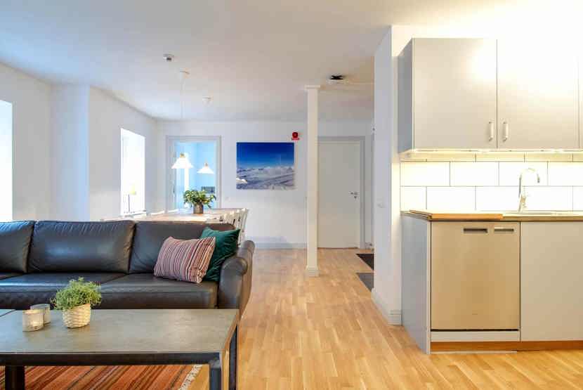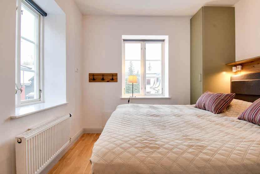 vaskemaskine, tørreskab, balkon (der skovles ikke sne), skiopbevaring, med en fælles indgang, elevator findes i huset, 3 parkeringspladser.
