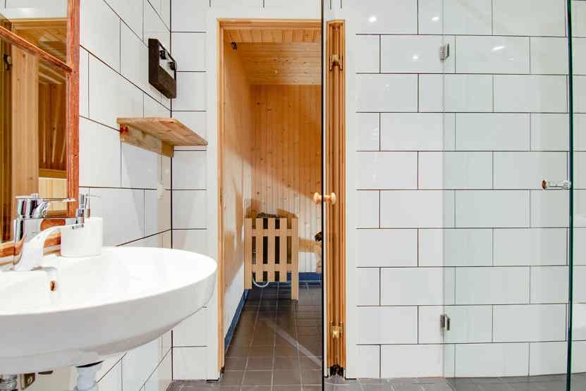 Badeværelse 1 = bruser/WC/sauna. Badeværelse 2 = bruser/WC.