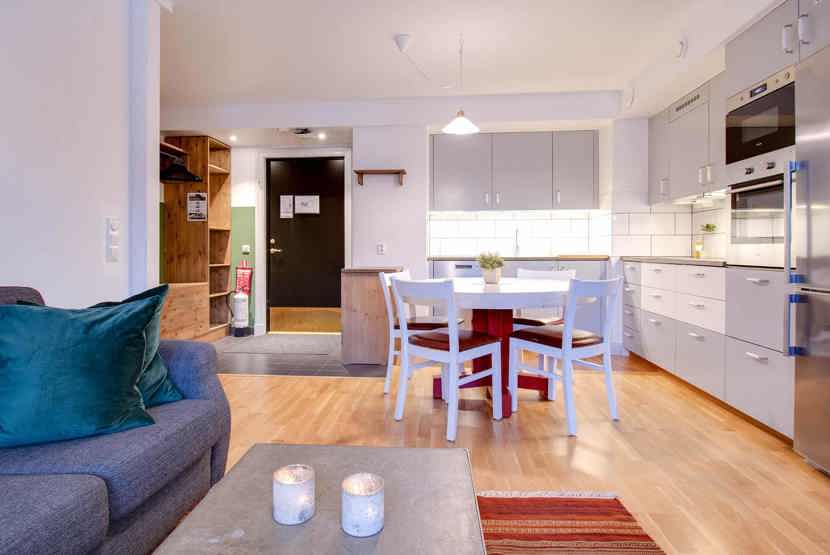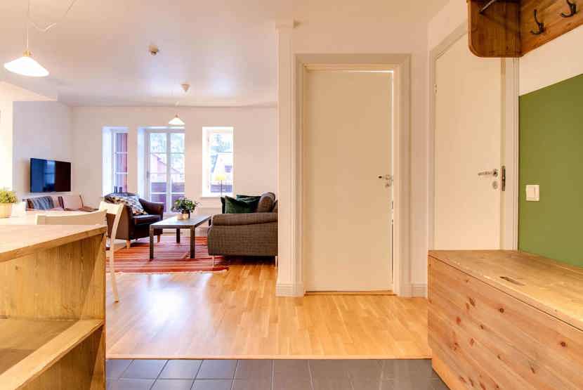 vaskemaskine, tørreskab, balkon (der skovles ikke sne), skiopbevaring, med en fælles indgang, elevator findes i huset, 2 parkeringspladser.