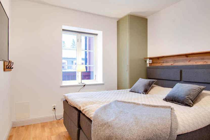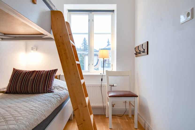 Skalets torg, Sporthuset ligger i Vemdalsskalet. Lejlighed, Placeret på 3. etage, 6 sengepladser, 63 kvm, alrum med køkkenafdeling, 3 soveværelse, 2 brusere, 2 WC, sauna.